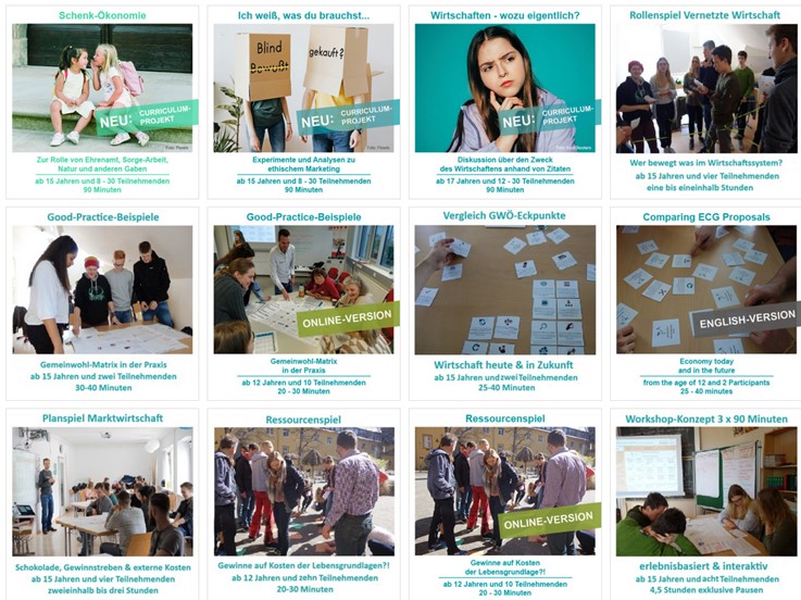 Gerade Schüler suchen und brauchen spielerische Elemente, um BNE in ihren Alltag zu integrieren und erste Erfahrungen zu machen. Die Gemeinwohl-Ökonomie (ECOnGOOD) hat dazu diverse Spielformate entwickelt, die über unser BNE-Portal sowie unsere deutschen Kollegen (AK-Bildung - https://germany.econgood.org/ak-bildung/#bildungsmaterialien kostenfrei angeboten werden.